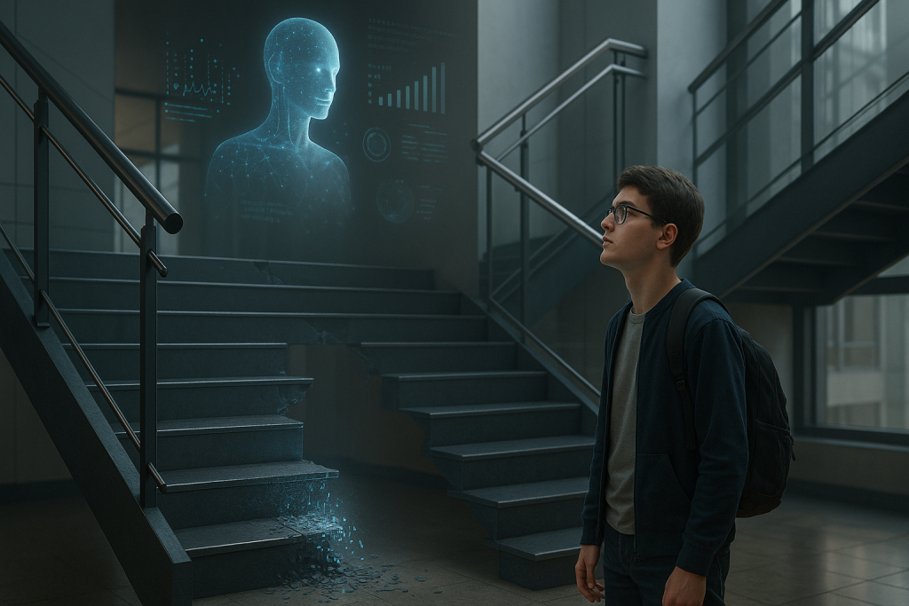 Hablemos claro: prohibir la IA en la escuela es tan absurdo como fue prohibir la calculadora en su día. Pero idealizarla como varita mágica es igual de pobre. Lo que urge no es la caricatura (ni veto ni culto), sino una mutación del punto de acceso profesional. Hay que elevar el suelo, no bajar el techo. Si el peldaño junior ha sido canibalizado por la automatización, el sistema educativo debe formar para el segundo peldaño; y el sistema productivo debe contratar para el segundo peldaño. No hay retorno al mundo anterior y, sobre todo, no lo merece.